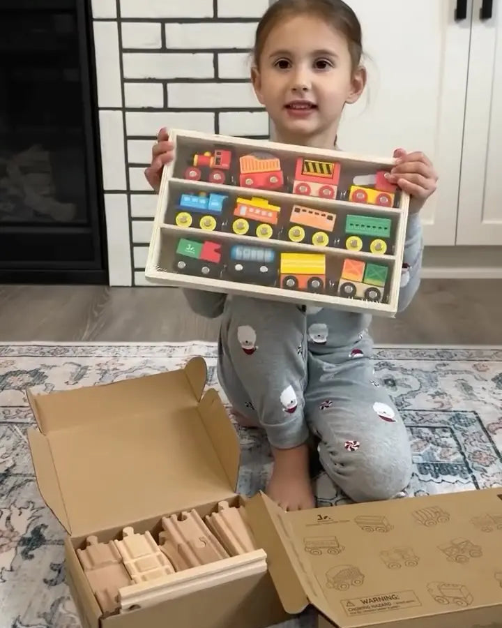 Wooden Magnetic Train Set with Storage Box