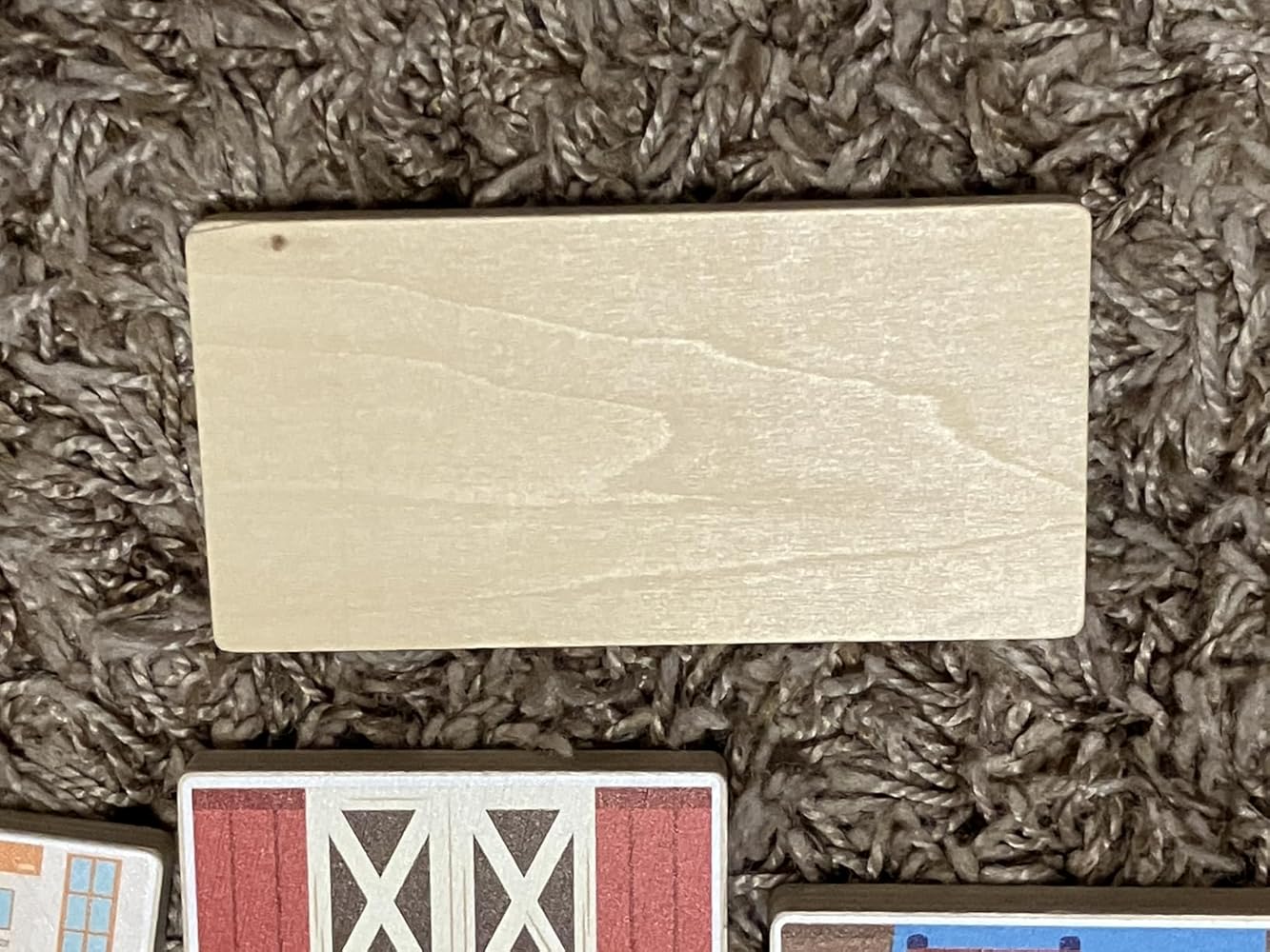 I ordered this 30 piece town play set for my son's wooden train collection. This set of 30 includes a variety of buildings, trees, and road signs. The pieces are wood. They are cleanly cut with rounded corners and sanded nice and smooth. The wood pieces are skinny and need a hard surface to be able to stand. They did not work on our long carpet unfortunately. I am also not a fan of how the backs are just blank. Overall, this set seems well made and is a fun addition to a wooden train collection.